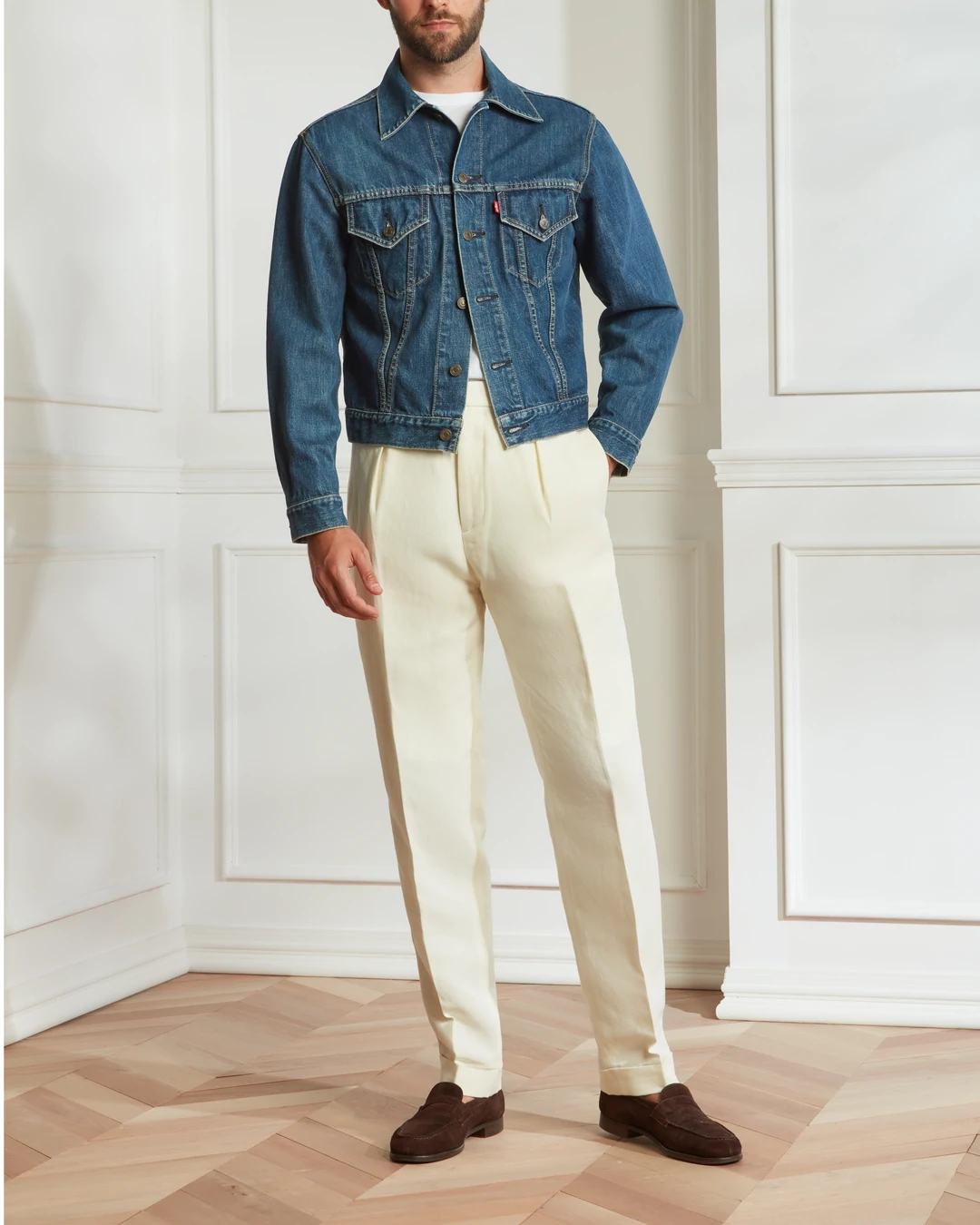 อีกทิปส์ที่ขาดไม่ได้คือให้มองหาเนื้อผ้ากางเกงสีขาวที่ออกไปทางขาวงาช้าง (Ivory) เพราะมันจะทำให้การสวมใส่ของคุณดูดีขึ้นกว่ากางเกงสีขาวจั๊วะที่ออกอมฟ้าเหมือนเสื้อนักเรียนที่เพิ่งซื้อใหม่ๆ เมื่อตอนเปิดเทอม