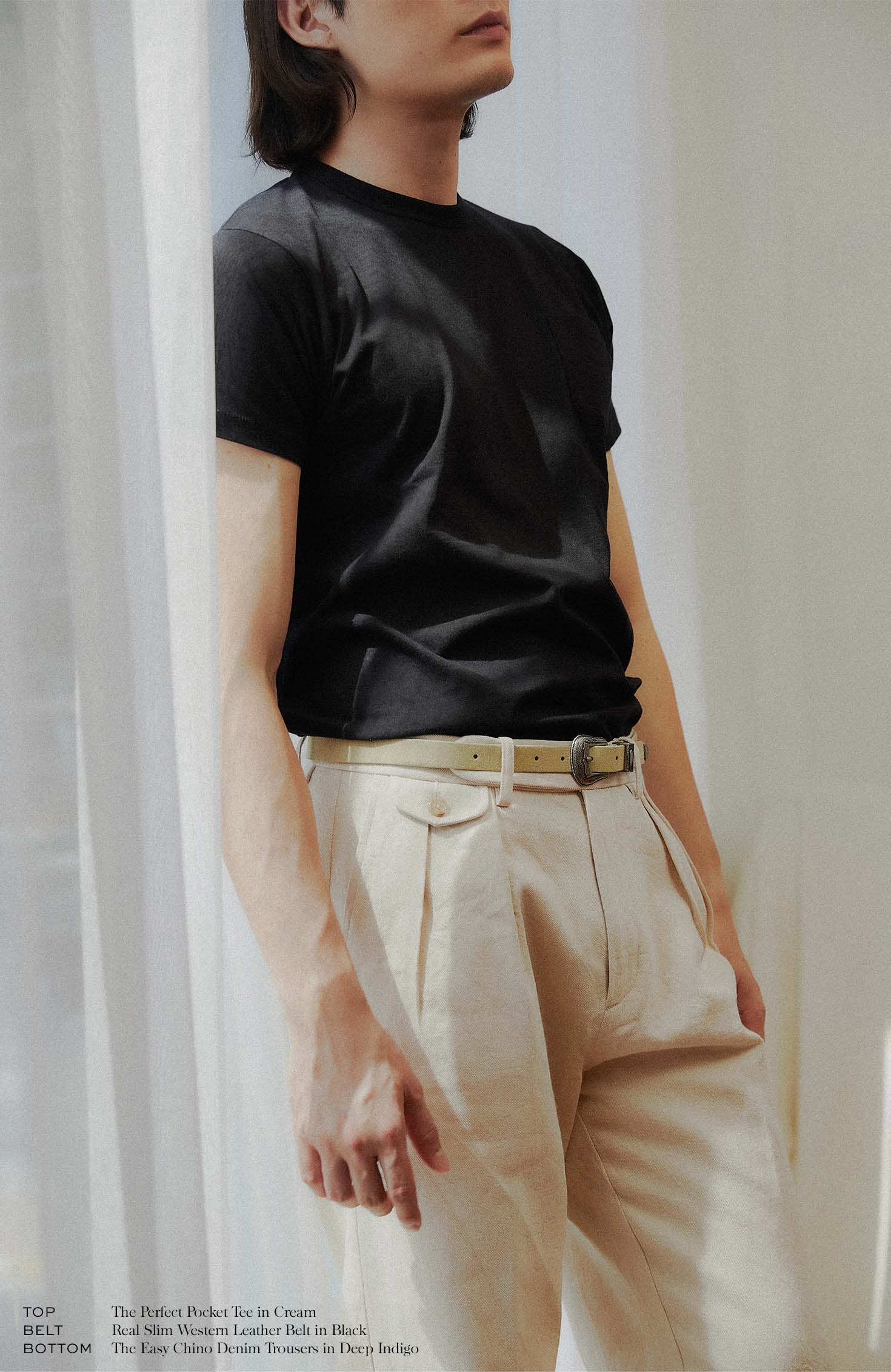 คาดเข็มขัดเวสเทิร์นเส้นเล็กหน้าตาดั้งเดิมแต่ขบถพองามที่เราให้ชื่อว่า Real Slim Western Belt สักหน่อยเป็นอันรู้เรื่อง