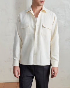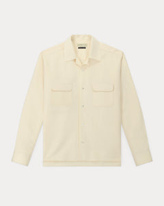 เสื้อเชิ้ตแขนยาว The Panama Camp-Collar Cotton-Linen Blend Shirt in Magnolia