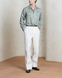 ดีไซน์ของเสื้อเชิ้ต The Panama Shirt ได้รับอิทธิพลจากเสื้อเชิ้ตสุดคลาสสิครายการดังกล่าว เปิดตัวครั้งแรกในปี 2022 ในสไตล์เสื้อเชิ้ตแขนสั้นทรงหลวม แต่กลับมาในคอลเลคชั่นนี้ในรูปแบบเชิ้ตลำลองแขนยาว ผลิตขึ้นจากเนื้อผ้าสัมผัสเย็นเช่นเคย พลิ้วสบาย ลื่นไหลด้วยเส้นใยชนิดพิเศษที่ทิ้งตัวสวยและเคลื่อนไหวไปกับผู้ใส่อย่างเป็นธรรมชาติ เพิ่มความหรูหราด้วยกระดุมเปลือกหอยแท้แบบวินเทจ ใส่กับกางเกงลินินแนวซัมเมอร์พร้อมโลฟเฟอร์หรือเอสพาดริลล์ บางอารมณ์หยิบมาสวมทับเสื้อยืดเข้าคู่กางเกงเอวสูงติดกลิ่นย้อนยุคก็เฉียบดีเหมือนกัน