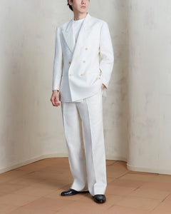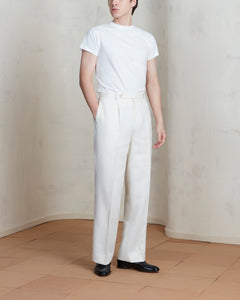 กางเกงสแล็ค Lata Wide-Leg Pleated Linen Trousers in Magnolia