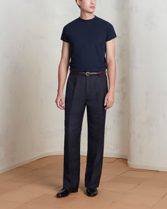 ผลิตจากผ้าฝ้ายลายทอทแยงที่ผ่านกระบวนการฟอกจนได้สัมผัสนุ่มมือ ยิ่งซักยิ่งใส่สบาย เอวระดับกลาง มีจีบช่วยรักษาทรงกางเกงและเพิ่มพื้นที่ขยับต้นขา พร้อมแถบยางยืดด้านหลังแบบซ่อนและกระดุมปรับขนาดเอวแบบกางเกงเทนนิสยุคแปดศูนย์ขนานแท้ เสริมรายละเอียดด้วยช่องใส่ของมีฝาปิดประดับกระดุมเปลือกหอยแท้