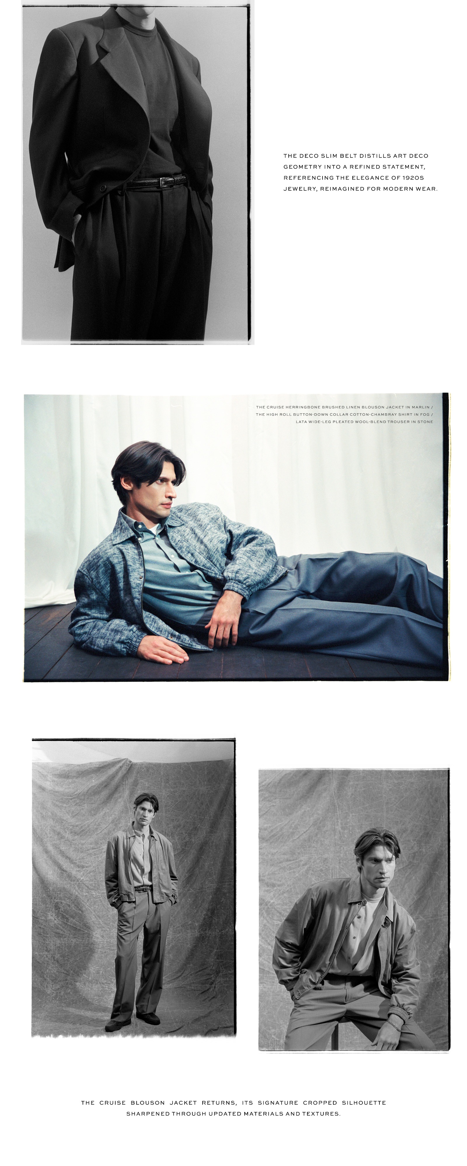 คอลเลคชั่นใหม่ของเราสะท้อนถึงความมั่นใจของผู้สวมใส่อย่างมีเอกลักษณ์และรสนิยม ค้นพบเสื้อผ้าดีไซน์คลาสสิคที่วางใจได้ ทั้งเทเลอร์ริ่ง กางเกงขายาว แจ็คเก็ต เข็มขัดหนัง และอีกมากมาย