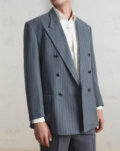 เบลเซอร์ The Crown Double-Breasted Chalkstriped Wool Blazer in Vintage Grey