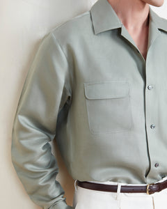 เสื้อเชิ้ตแขนยาว The Panama Camp-Collar Linen-Viscose Blend Shirt in Sage
